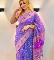মিনাকারী মাসলাইস কটন শাড়ী (Blue) (MS-01)
